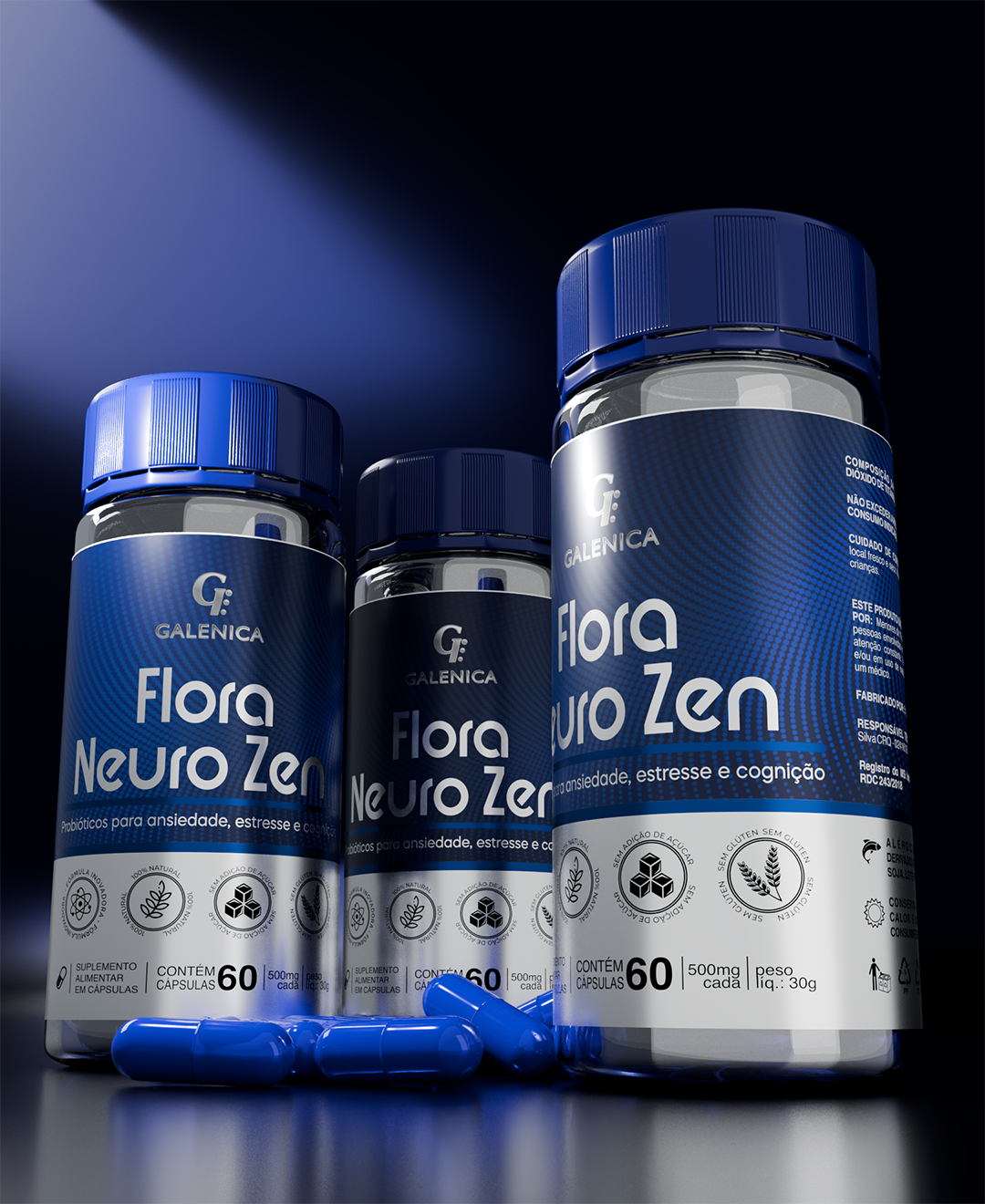 Flora Neuro Zen - 3 potes - Probióticos para Ansiedade, Estresse e Cognição